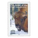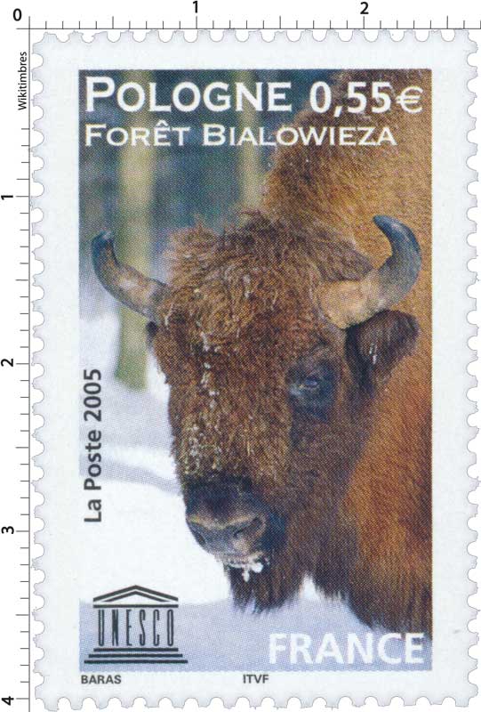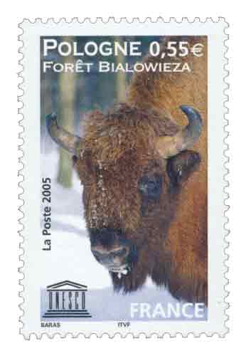 | Commentaire | Unesco Pologne Forêt Bialowieza Les bisons , à peine 300 en Europe ont été réintroduits dans la forêt de Bialowieza, qui se situe sur la ligne de partage des eaux entre la mer Baltique et la mer Noire. Une faune remarquable a choisi ce massif de feuillus et de conifères comme biotope , notamment des mammifères rares comme le loup, le lynx et la loutre. |
