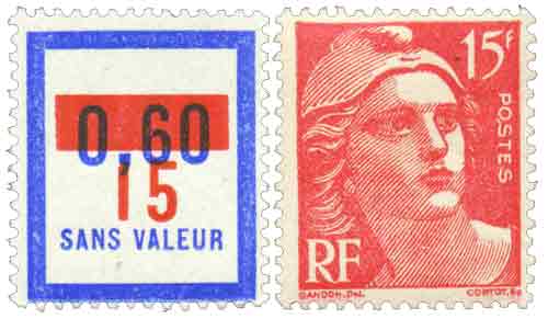 | Description | Rapprochement avec le timbre POSTE-1949-3 (FICTIF-1945-1 surchargé) |