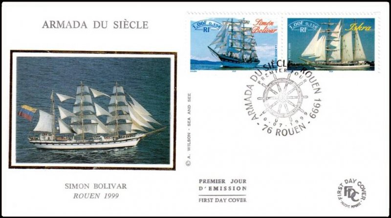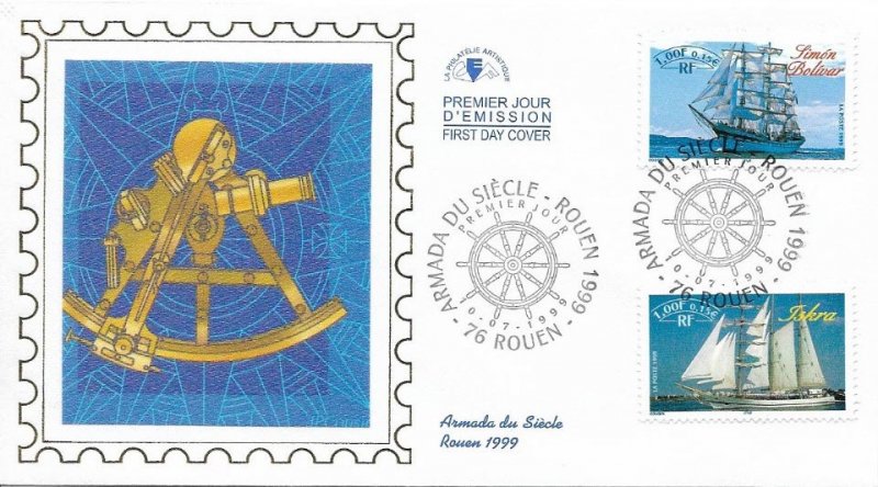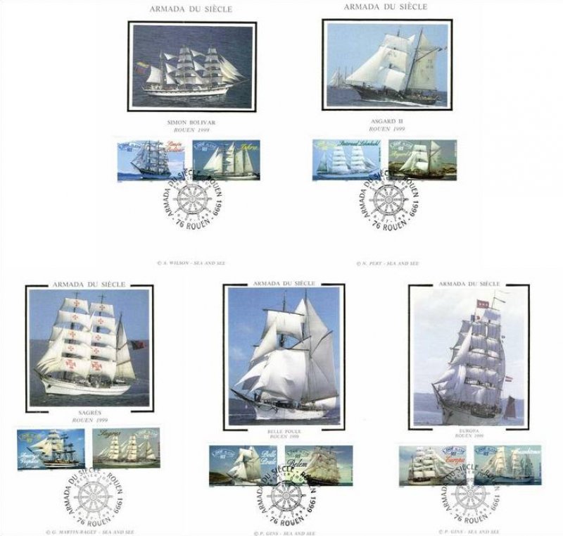 | Commentaire | Description synthétique du visuel du timbre : Cette feuille de 10 timbres-poste est émise à l’occasion de “ L’Armada du siècle ”, rassemblement international de voiliers anciens. Cette importante manifestation se déroulera à Rouen, au mois de juillet 1999, et regroupera les plus célèbres voiliers du monde. Parmi les 26 bateaux officiellement présents à ce jour, 10 d’entre eux font l’objet d’un timbre : Simón Bolívar (Venezuela), Iskra (Pologne), Statsraad Lehmkuhl (Norvège), Asgard II (Irlande), Belle Poule (France), Belem (France), Amerigo Vespucci (Italie), Sagres (Portugal), Europa (Hollande), Cuauhtemoc (Mexique). Cette feuille inaugure une nouvelle collection : la Collection Jeunesse. Cette collection est destinée aux jeunes de 8 à 12 ans, philatélistes ou non, et fera l’objet d’une émission par an. A cette occasion, un logotype a été créé et associé à la Collection Jeunesse : il intègre le nom de la collection et la lettre J, autour de laquelle 5 timbres aux couleurs vives évoluent. |