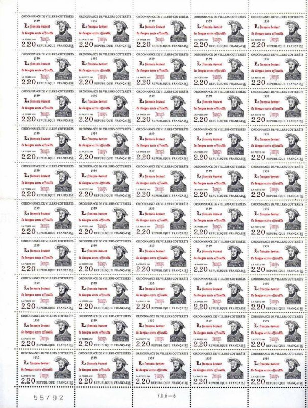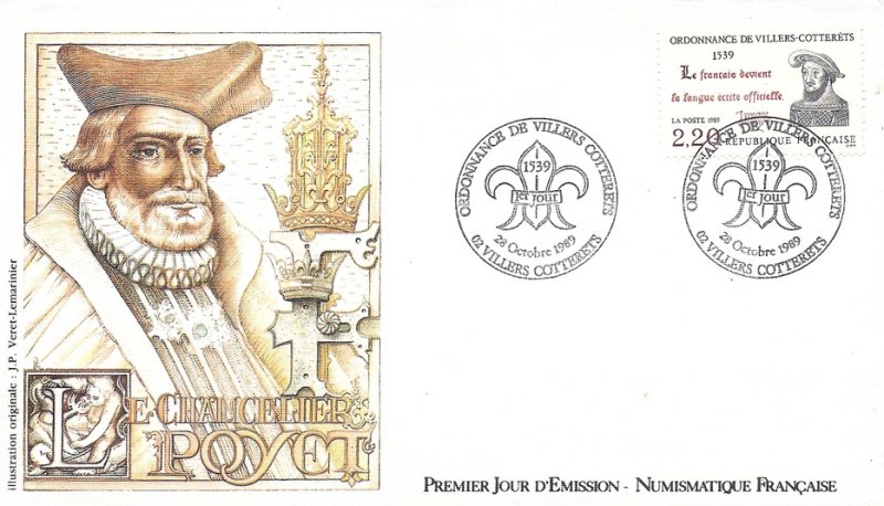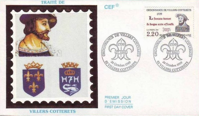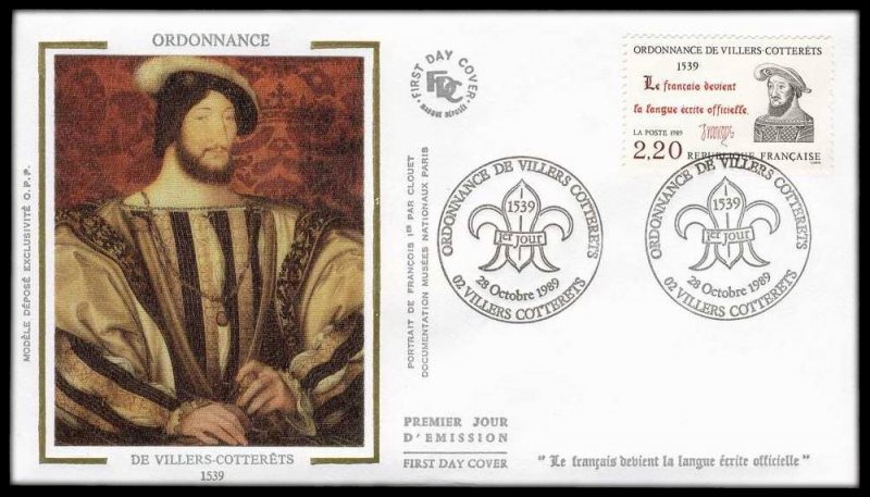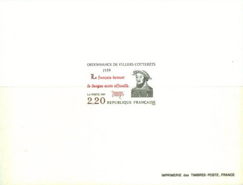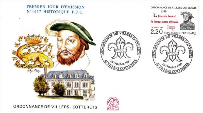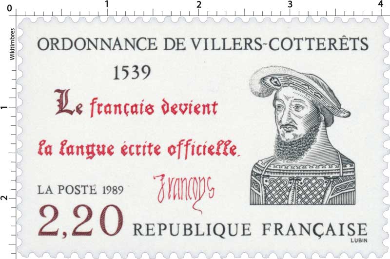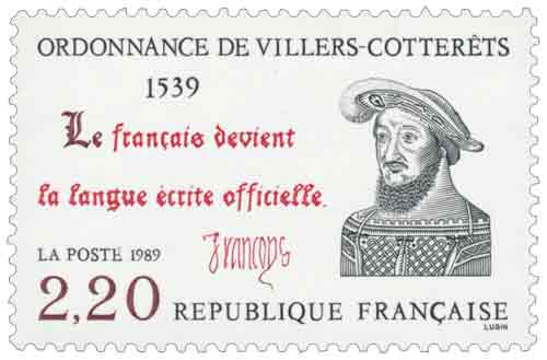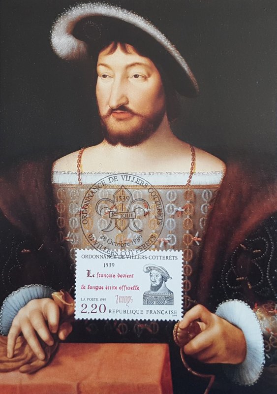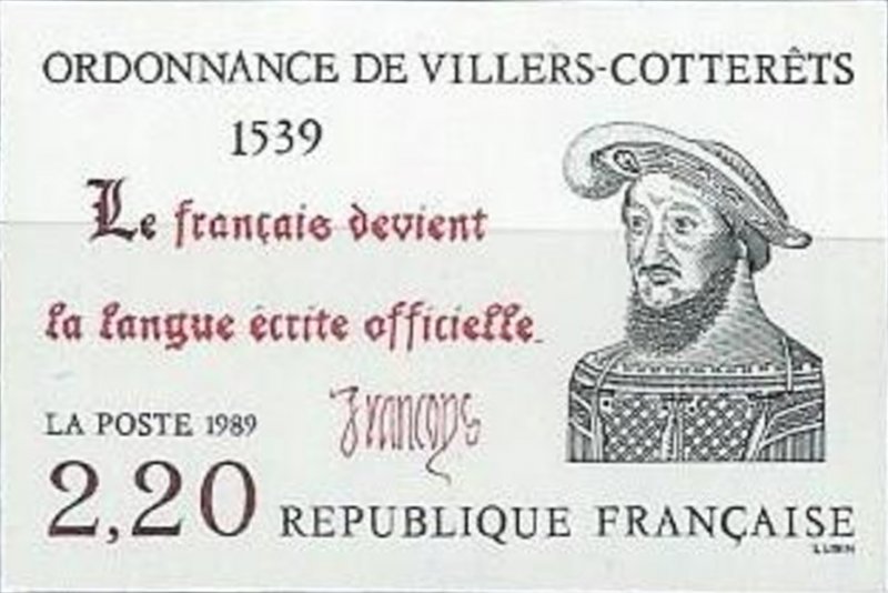 | Commentaire | Visuel : François 1er, qui par son Ordonnance, fera du "Français" la langue officielle, à la place du latin, constituant de la sorte, un puissant instrument d'unification du pays. |