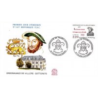 | Description | 450e anniversaire de l'Ordonnance de Villers-Cotterêts, sur le traitement des archives, le français devient la langue écrite officielle. Document signé à Villers-Cotterêts (Aisne) par le roi de France François Ier |
