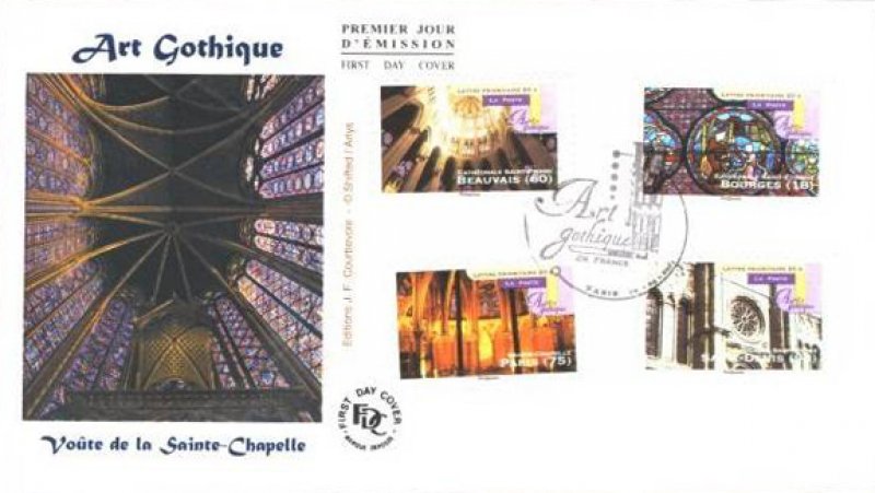 | Commentaire | timbres autocollants. Les cathédrales sont Les chefs d'œuvres de L'art gothique. Les 12 timbres de ce carnet portent sur des éléments architecturaux caractéristiques de L'esthétique gothique: La recherche de hauteur et de verticalité permises par La croisée d'ogives, Les jeux de couleurs de La Lumière pénétrant par Les vitraux, La multiplication des colonnettes, des sculptures, et Les façades de plus en plus décorées. Existe aussi en Feuille de 50 |