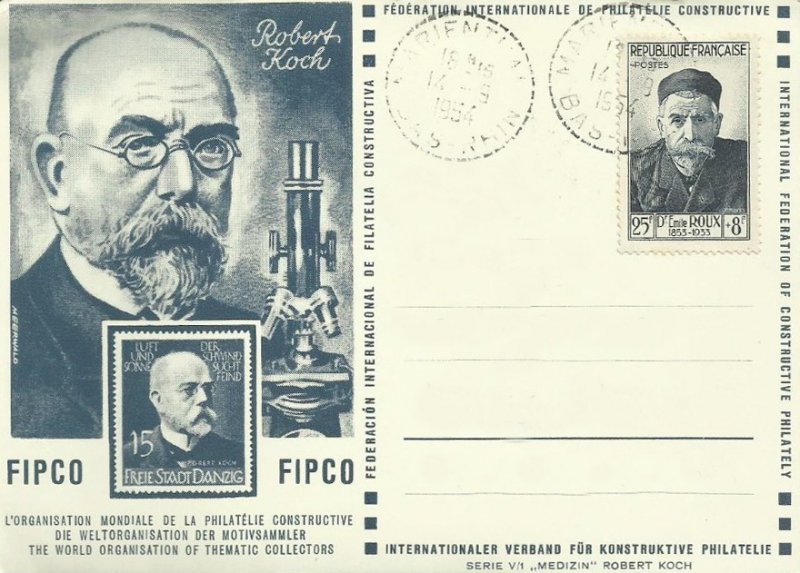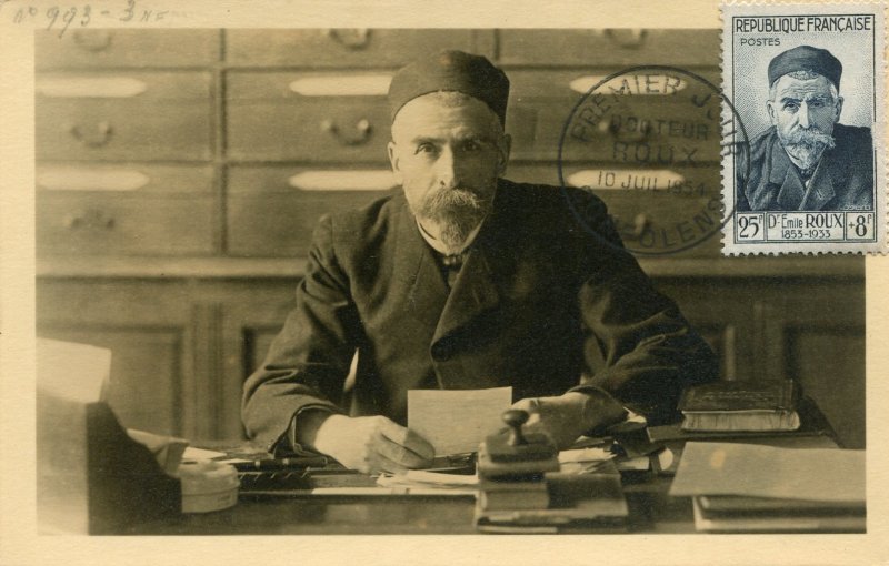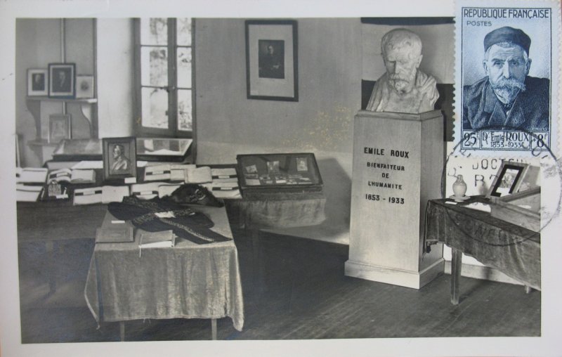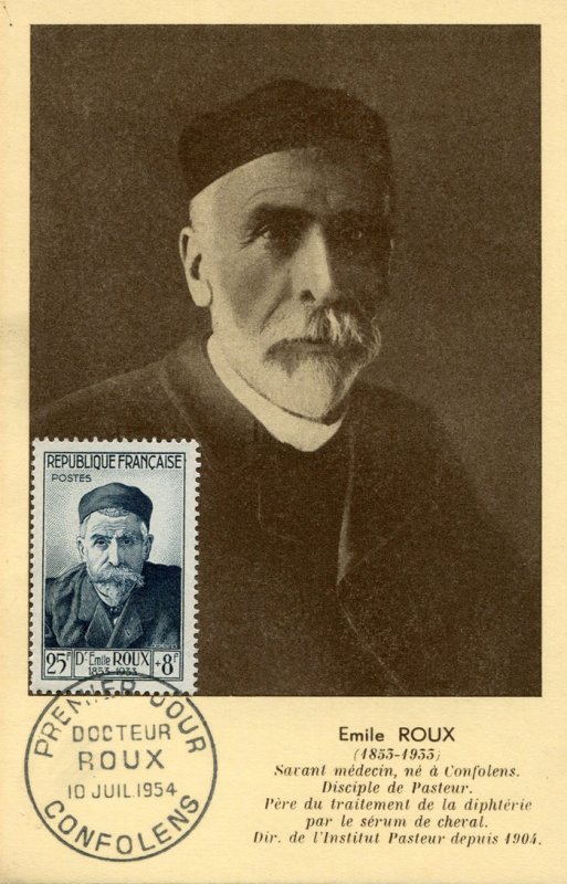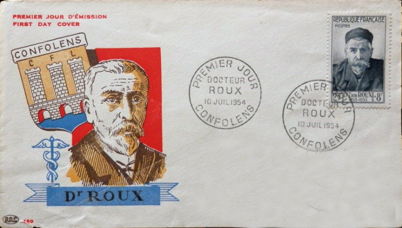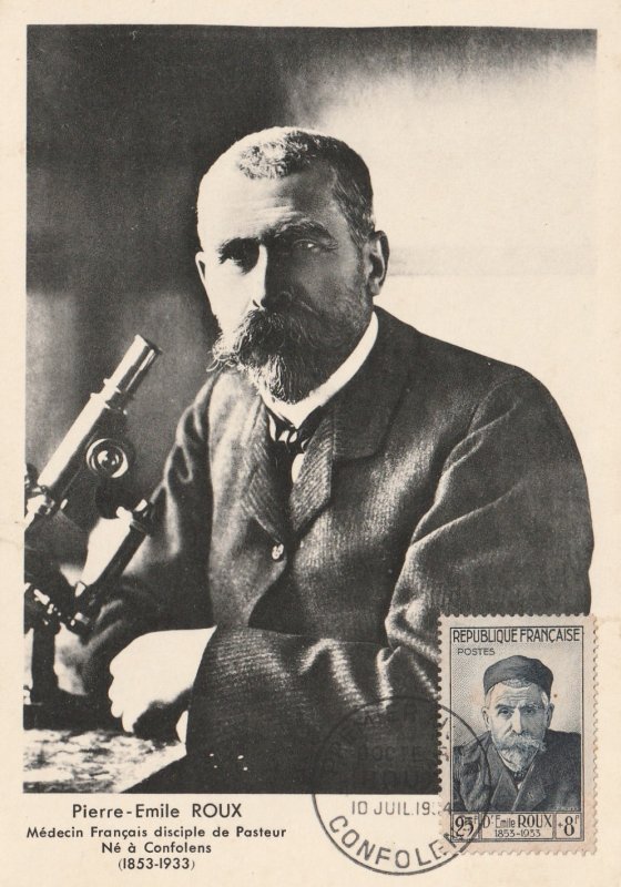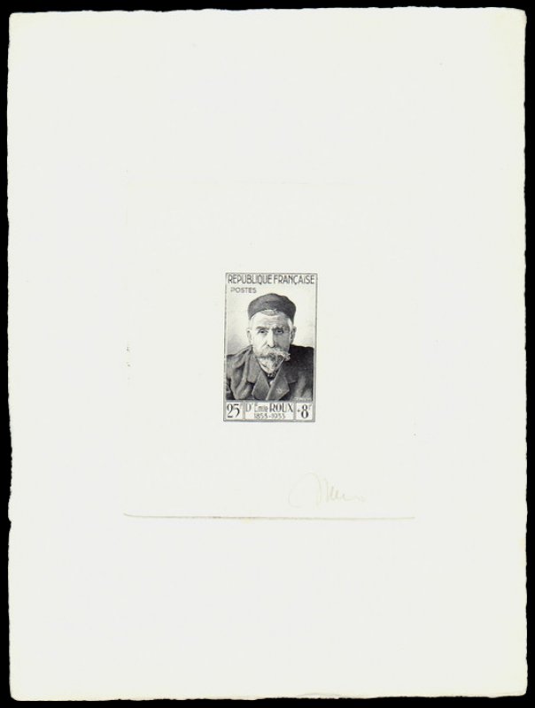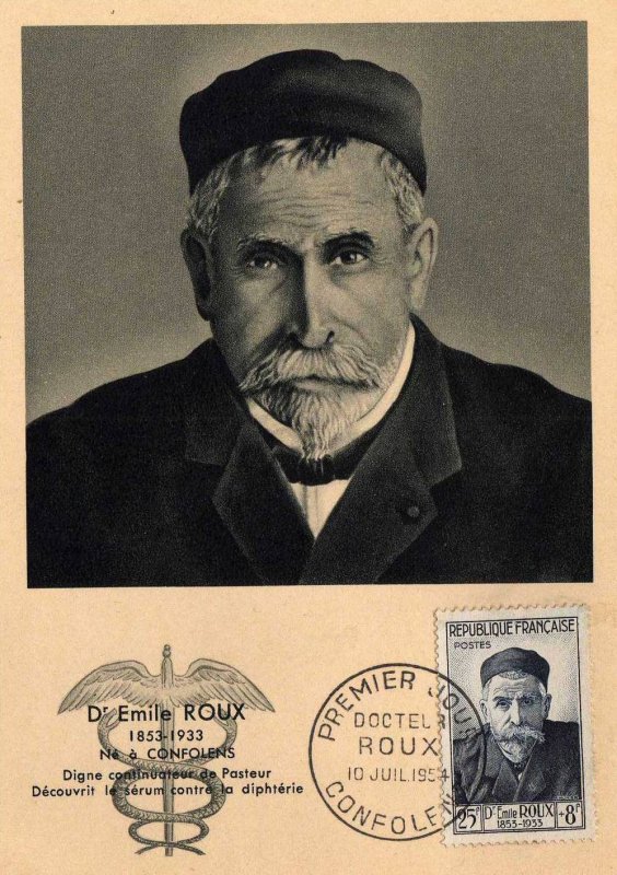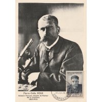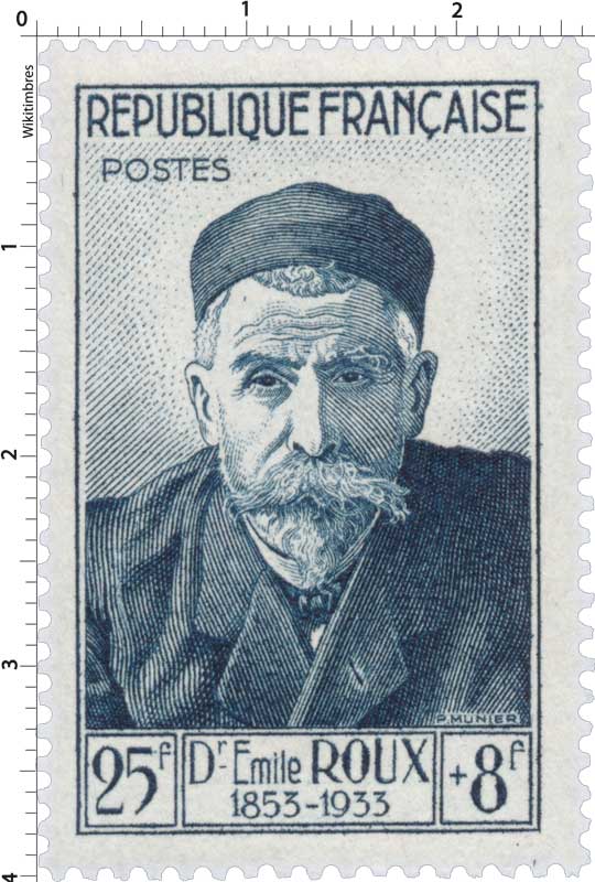 | Commentaire | Ce timbre est grevé d'une surtaxe au profit de la Croix-Rouge française Visuel : portrait du docteur E. Roux, qui a découvert le traitement de la diphtérie par le sérum de cheval et a mis au point, à la suite de ses travaux sur les toxines, le sérum antitétanique. |