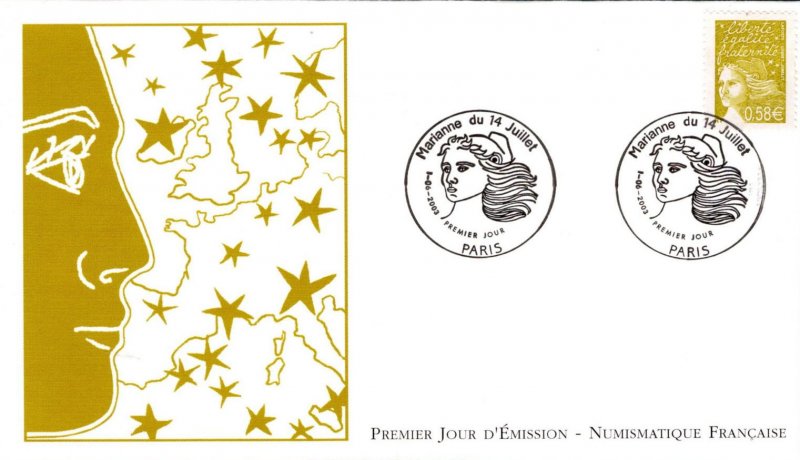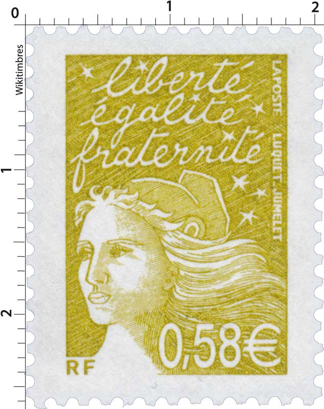 | Description | Type Marianne du 14 juillet. Type de 2002. (Légende RF au lieu de LA POSTE) |