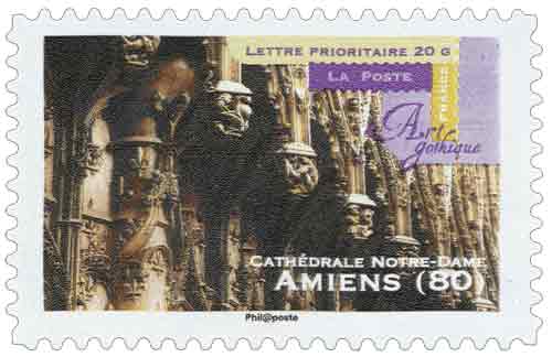 | Commentaire | timbres autocollants. Les cathédrales sont Les chefs d'œuvres de L'art gothique. Les 12 timbres de ce carnet portent sur des éléments architecturaux caractéristiques de L'esthétique gothique: La recherche de hauteur et de verticalité permises par La croisée d'ogives, Les jeux de couleurs de La Lumière pénétrant par Les vitraux, La multiplication des colonnettes, des sculptures, et Les façades de plus en plus décorées. Existe aussi en Feuille de 50 Visuel : Encadrant le vaisseau principal, elles semblent faire une haie d'honneur à l'explosion de lumière du somptueux Chœur baroque, tandis que les pyramides de leurs quatre flèches élèvent le regard et l'esprit. Créées par des Maîtres-Huchiers du XVIe siècle, elles représentent le plus beau chef-d'œuvre d’ébénisterie jamais réalisé et jamais égalé. Véritable dentelle de chêne blond d'une perfection quasi surnaturelle, elles mettent en scène plusieurs milliers de personnages bibliques ou ordinaires, représentés dans leur vie quotidienne, leurs occupations et leurs travaux, avec les costumes et les habitudes des picards de l'époque. Les artistes-ébénistes ont sculpté dans le bois, avec une virtuosité prodigieuse, des hommes, des animaux, des femmes, des rois, des enfants, qui parlent, prient, écoutent, s'aiment, conspirent, accouchent, lisent, labourent, éduquent, pleurent. |