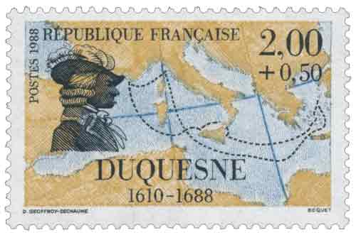 | Commentaire | Ce timbre rend hommage à Abraham Duquesne, figure majeure de la marine française du XVIIe siècle, dont la carrière illustre à la fois l’affirmation de la puissance navale du royaume et les tensions religieuses de son époque. Né à Dieppe en 1610 dans une famille protestante, Duquesne s’impose très tôt par son talent maritime, prenant le commandement d’un navire dès l’adolescence et remportant ses premières victoires avant même d’entrer officiellement au service de la Marine royale. Son intégration sous Richelieu, malgré son origine roturière et sa confession réformée, témoigne de la priorité accordée alors à la compétence dans le contexte stratégique de la guerre de Trente Ans. Au fil des décennies, il se distingue lors d’opérations décisives en Méditerranée et dans l’Atlantique, contribuant à la reconquête des îles de Lérins, à la destruction de forces navales espagnoles et, plus tard, à la lutte contre les flottes hollandaises durant la guerre de Hollande. Les victoires de Stromboli, d’Augusta ou de Palerme, au cours desquelles périt l’amiral Ruyter, inscrivent durablement son nom dans l’histoire maritime européenne. Ce timbre s’inscrit dans la série consacrée aux marins et explorateurs, valorisant des personnalités qui ont façonné la politique navale française. Il évoque également la singularité du destin de Duquesne, resté fidèle à sa foi après la révocation de l’édit de Nantes, tout en conservant l’estime et la protection de Louis XIV, qui le fit marquis sans jamais pouvoir l’élever au rang d’amiral. Par cette émission, l’administration postale rappelle la complexité humaine et politique d’un siècle où grandeur militaire, convictions personnelles et pouvoir royal se trouvaient étroitement liés. Article rédigé pour WikiTimbres |