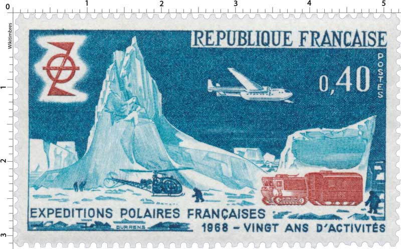 Timbre : EXPÉDITIONS POLAIRES FRANÇAISE 1968 - VINGT ANS D'ACTIVITÉS