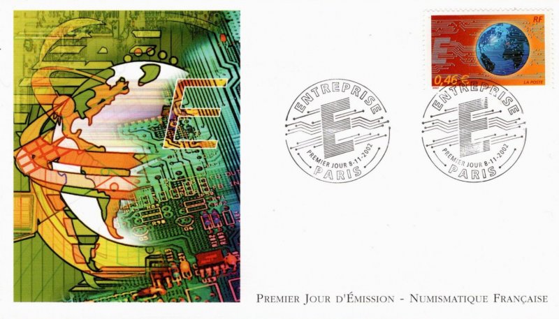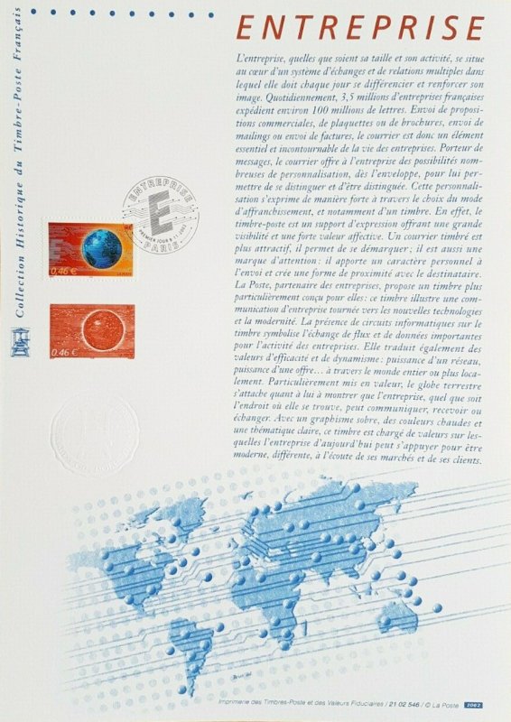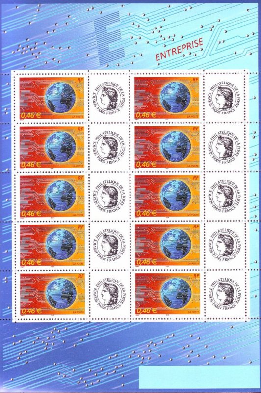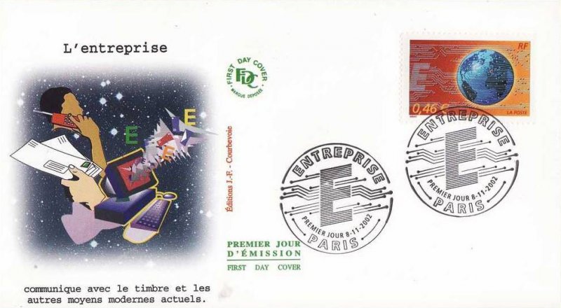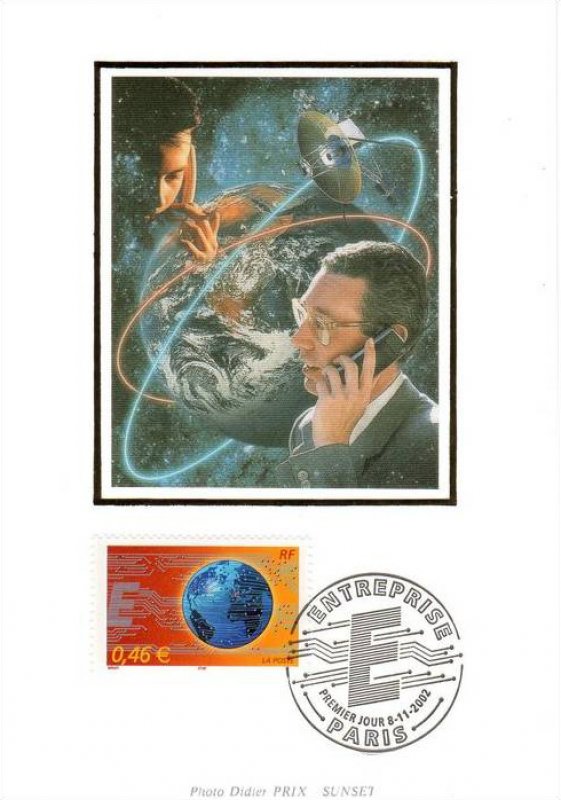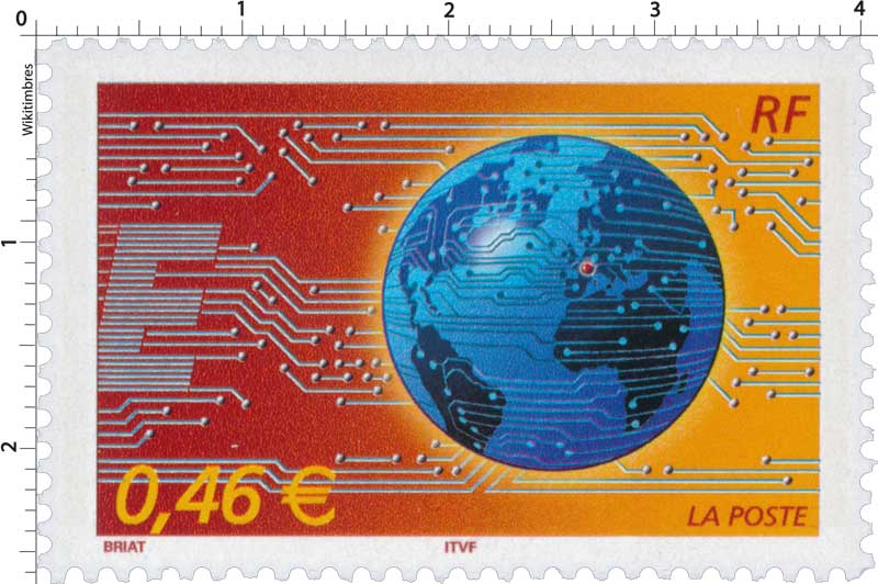 | Commentaire | Description synthétique du visuel du timbre : Au sein de la série des semi-permanents, ce timbre a plus particulièrement vocation à intéresser les entreprises. Le visuel renvoie l’image d’une communication d’entreprise moderne et ouverte, s’appuyant sur les nouvelles technologies et évoquant les échanges avec l’international. Timbre sans millésime (www.greffe-tc-paris.fr) |