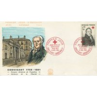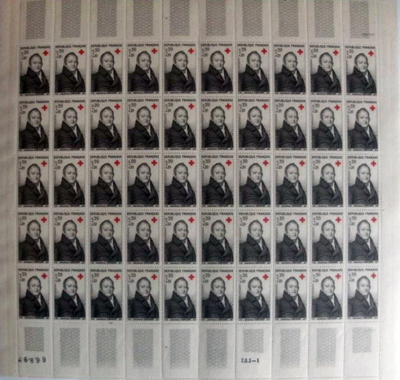 | Commentaire | Ce timbre est grevé d'une surtaxe au profit de la Croix Rouge française. 345 000 carnets de 8 timbres (4 de chaque) furent émis. Parfois, il y a des médecins qu’on connaît mal, mais qui ont changé la médecine en profondeur. Jean-Nicolas Corvisart en fait clairement partie. Né en 1755 dans un petit village des Ardennes (Dricourt, pour être précis), il a marqué son époque... et même bien au-delà. À vrai dire, Corvisart n'était pas juste un médecin de plus dans l’histoire. Formé à Paris, il devient rapidement l’un des grands noms de la médecine interne. Ce qui le rend célèbre ? L'art d'écouter — littéralement. Il développe et systématise la percussion thoracique, cette technique qui permet, simplement en frappant sur le thorax, de détecter des maladies cachées. Avant lui, personne n'y croyait vraiment. Mais Corvisart, lui, euh… il persiste. Et il finit même par enseigner cette méthode à ses élèves, dont un certain René Laennec — oui oui, celui qui inventera ensuite le stéthoscope. Détail croustillant : Corvisart devient aussi le médecin personnel de Napoléon Bonaparte. (<!-- plutôt classe, non ? -->) Il accompagne l'Empereur pendant des années, soignant autant ses blessures que ses migraines. Pourtant, malgré sa proximité avec le pouvoir, il reste fidèle à ses valeurs de médecin rigoureux et modeste. Il semble que Corvisart ait eu à cœur de faire progresser la médecine pour tous, et pas seulement pour les puissants. Alors oui, son portrait a bien mérité d'être immortalisé sur un timbre en 1964, avec une surtaxe pour aider la Croix-Rouge. Une belle manière de rappeler que derrière chaque grande avancée médicale, il y a, souvent, quelqu'un qu’on a failli oublier. WikiTimbres |
