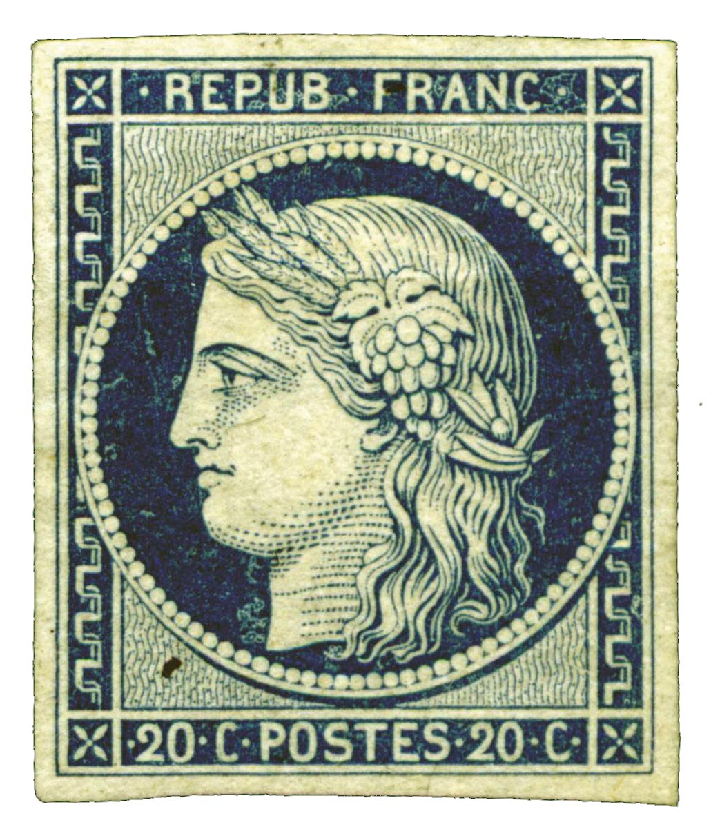 | Commentaire | Cérès - IIème République. Non émis la plupart incinérés Voir la vidéo "Histoires de timbres" En savoir plus sur Wikipédia : Cérès Décidé le 9 mars 1849, le 20 centimes bleu est conçu pour remplacer le 20 c noir, dont l’oblitération se distingue mal sur le courrier. L’impression débute dès avril 1849, en typographie à plat, avec les mêmes planches que les autres valeurs Cérès : deux tirages sont réalisés, du 7 avril au 19 mai 1849, puis du 10 décembre 1849 au 31 mars 1850, sur papiers variant du blanc à l’azuré pâle. La nuance s’étend du bleu au bleu foncé, les seuls connus avec gomme étant les bleu foncé sur papier blanc. Faute d’incitation à préaffranchir — le paiement à l’arrivée étant encore largement utilisé — les stocks du 20 c noir restent importants. Lorsque le nouveau tarif du 1er juillet 1850 supprime la lettre simple à 20 centimes (port fixé à 25 c), la valeur bleue devient inutile avant même sa mise en vente. Aucun exemplaire n’est mis à la disposition du public. Une tentative de surcharge “25c” en rouge est effectuée afin d’utiliser les feuilles déjà imprimées, mais le projet est abandonné et les timbres surchargés sont détruits. Un unique exemplaire du tirage initial, surchargé, est connu, passé dans la collection du baron Philippe de Ferrari. Les timbres rencontrés sur le marché proviennent de la réimpression de 1862, commandée pour Sir Rowland Hill : nuances plus claires, exemplaires uniquement neufs, avec ou sans gomme. Bien que jamais émis, ce 20 centimes bleu a fixé une tradition durable : la couleur bleue restera associée au tarif intérieur de la lettre simple jusqu’en 1900, malgré les recommandations internationales postérieures. |