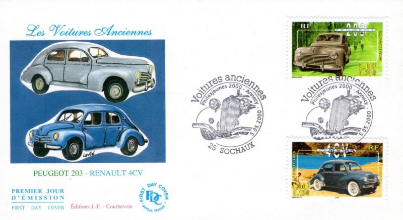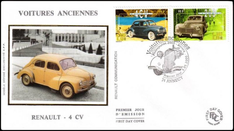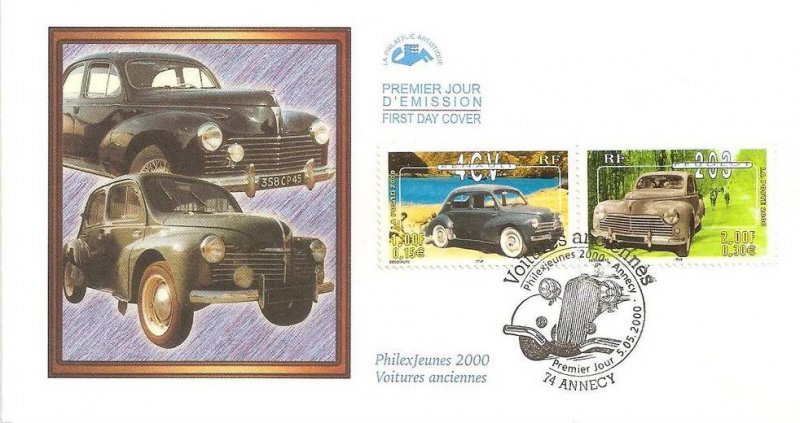 | Commentaire | Description synthétique du visuel du timbre : Dans la continuité de la feuille Armada du Siècle Rouen 1999, qui inaugurait la Collection Jeunesse, la feuille émise en 2000, à l’occasion de l’exposition Philexjeunes 2000, rend hommage aux voitures anciennes. Elle regroupe les dix voitures ayant marqué le siècle et ayant été le plus plébiscitées par les jeunes et les adhérents des associations automobiles : Bugatti 35, Volkswagen Coccinelle, Citroën Traction, Cadillac 62, Renault 4CV, Peugeot 203, Simca Chambord, Citroën DS19, Hispano-Suiza K6 et Ferrari 250 GTO. Le contour du bloc est illustré de voitures et d’accessoires évoquant l’univers de l’automobile. Les voitures sont traitées de façon réaliste et positionnées sur un fond monochrome ou dichrome évoquant l’environnement ou les évènements auxquels les Français les associent. Ce principe graphique contribue à mettre en valeur chacune des automobiles dans une ambiance très colorée. Émis uniquement en feuillet. |
