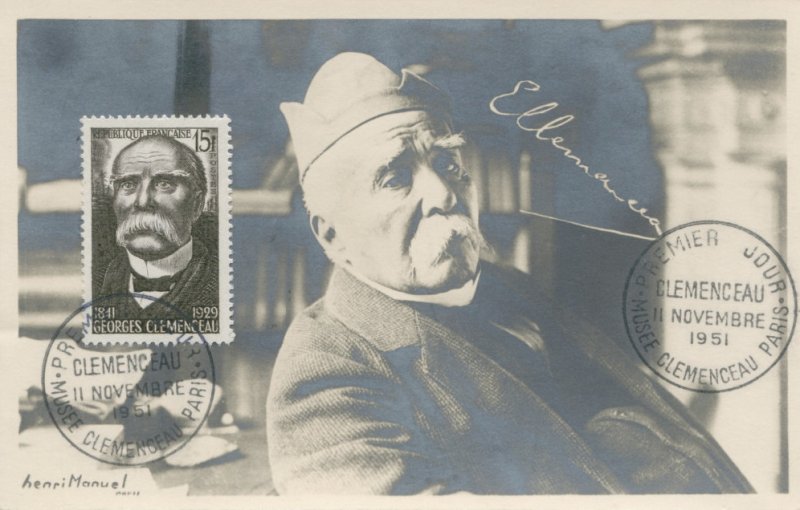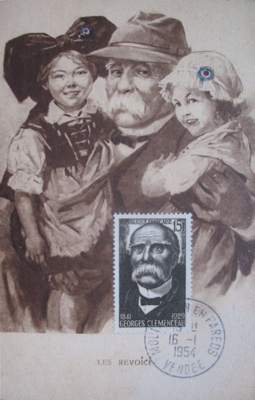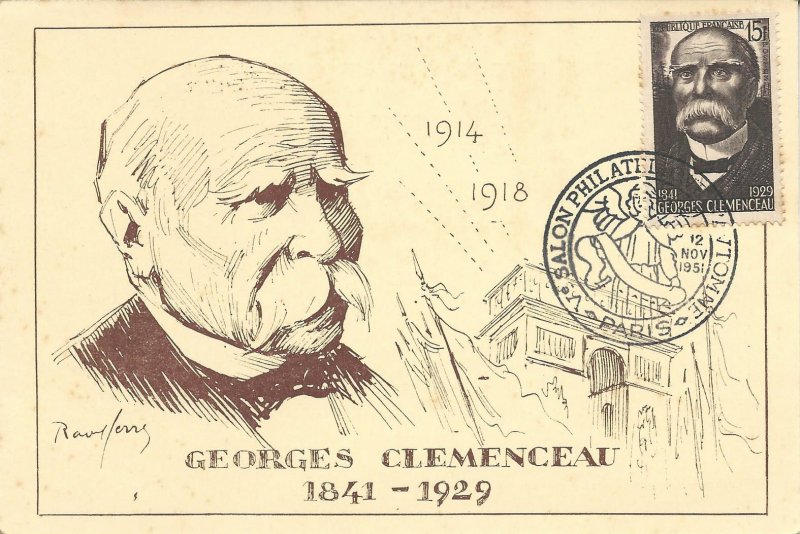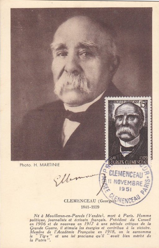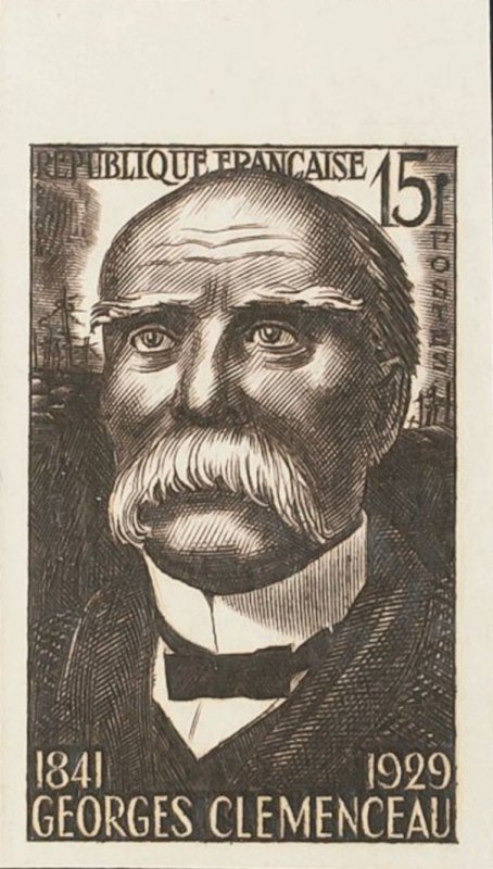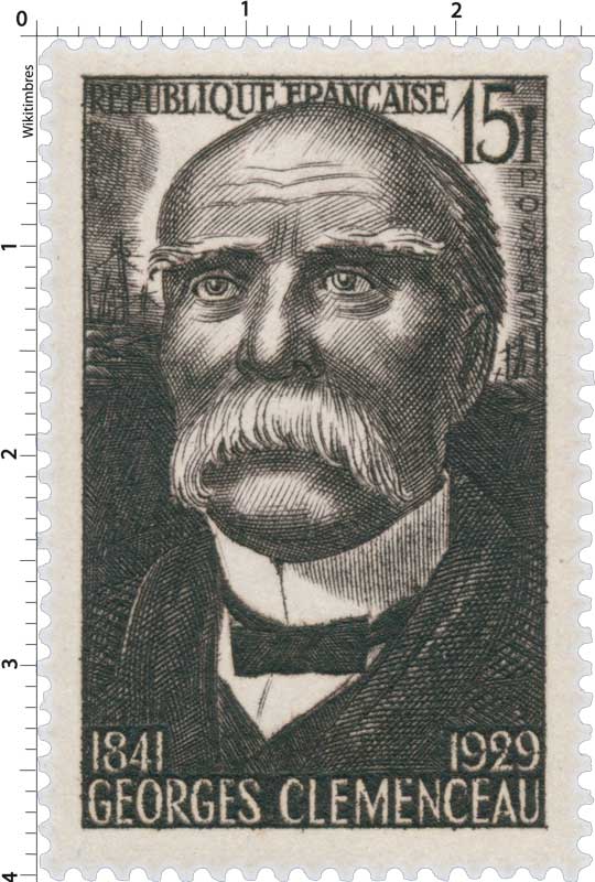 | Commentaire | Visuel : Georges Clemenceau, homme politique et écrivain né à Mouilleron-en-Pareds (85-Vendée) le 28 sept.1841. Président du Conseil en 1906 et 1917, période critique de la Grande Guerre, il stimula les énergies et contribua à la victoire. |