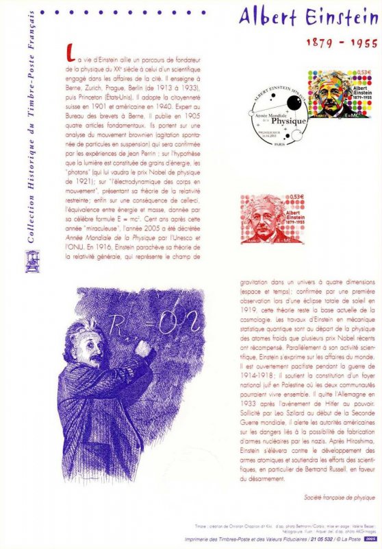 | Description | Personnalité. Cinquantenaire de la mort d'Albert Einstein (1879-1955), physicien, né à Ulm (Allemagne) |