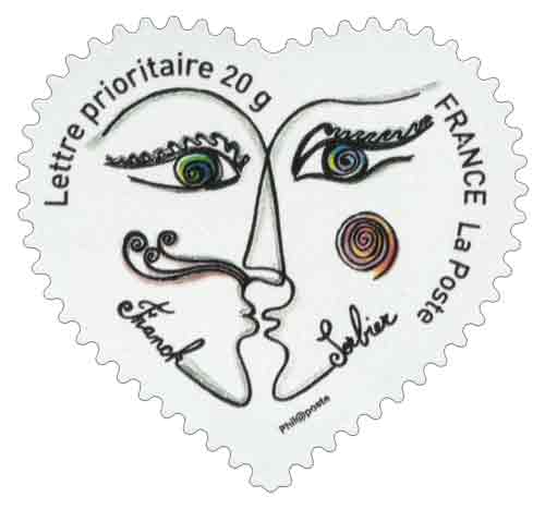 | Commentaire | Saint Valentin. Cœur du couturier Franck Sorbier. Visages formant un Cœur, autoadhésif. Timbre sans millésime