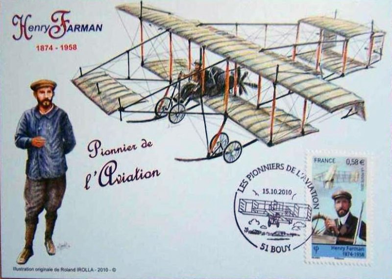 | Description | Pionniers de l'aviation : Henri Farman (1874-1958), né à Paris (grosse faute d'orthographe sur le nom, Henri pas Henry) |