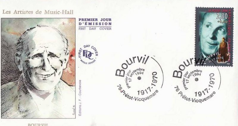 | Description | Bourvil (1917-1970), acteur et chanteur, né à Prétot-Vicquemare (Seine-Maritime) |