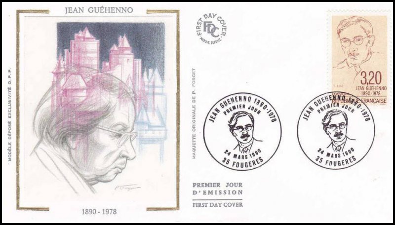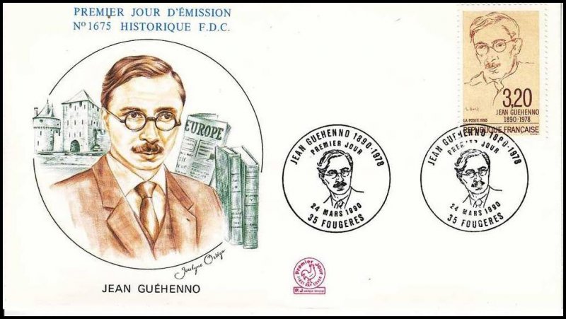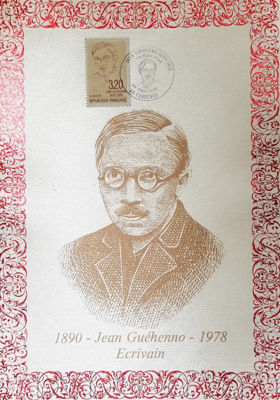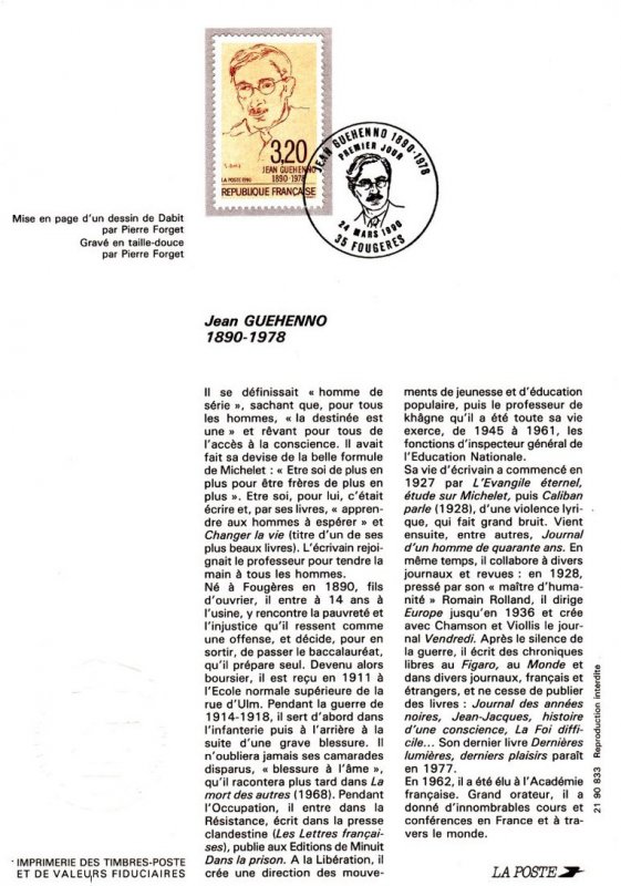 | Description | Centenaire de la naissance de Jean Guéhenno (1890-1978), écrivain et critique littéraire, né à Fougères (Ille-et-Vilaine) |