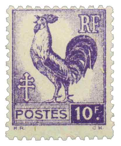| Commentaire | Le timbre de 10 francs violet appartient à la série dite du Coq d’Alger, émise à partir du 15 novembre 1944 par le Gouvernement provisoire de la République française. Conçue dans le contexte de la Libération, cette série prolonge les premières émissions introduites en Corse dès juillet 1944 afin de pallier la pénurie de timbres métropolitains. Dessiné par Henry Razous, avec reports de Charles Hervé, ce timbre se distingue par l’apparition officielle du coq gaulois comme symbole républicain sur un timbre-poste, accompagné de la croix de Lorraine et du monogramme « RF ». La valeur faciale élevée de 10 francs correspond essentiellement à un usage d’affranchissement complémentaire, ce qui explique un tirage relativement limité. L’impression est réalisée en sous-traitance par l’entreprise Typo-Litho Carbonnel d’Alger, sous contrôle local, dans un contexte matériel et logistique encore contraint. |