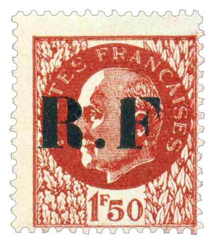 | Description | Maréchal Pétain, type Bersier, surcharge R.F Type I |