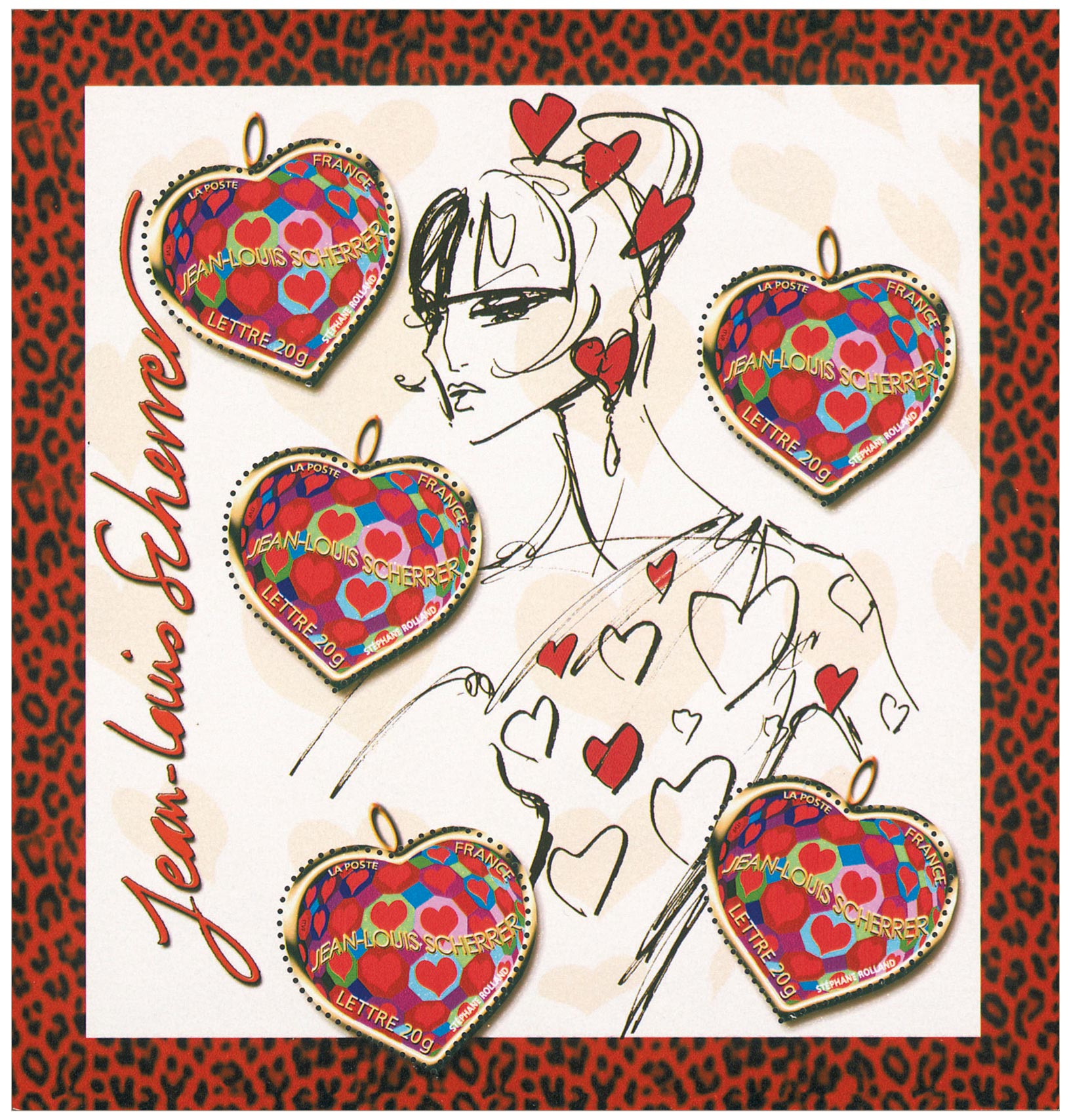 | Commentaire | Jean-Louis Scherrer Cette année 2006, Jean-Louis Scherrer rejoint le cercle des couturiers « timbrifiés » après Yves Saint-Laurent, Christian Lacroix, Torrente, Chanel et Cacharel. Dessiné par Stéphane Rolland, à qui la maison Jean-Louis Scherrer a confié la création de ses lignes haute-couture depuis 1997, la mini feuille reflète elle aussi l’esprit de la maison de couture Scherrer. Timbre sans millésime |