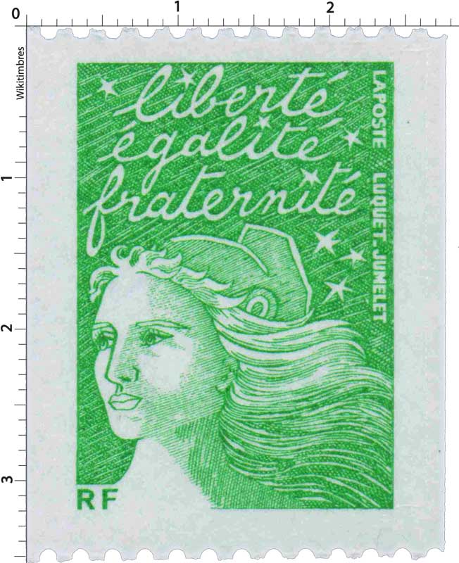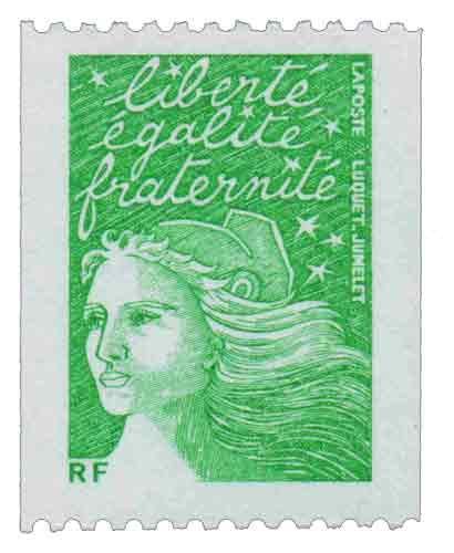 | Description | Type Marianne du 14 Juillet. Type de 2002. Sans valeur indiquée (validité permanente, pour les écoplis). (Légende RF au lieu de LA POSTE) |