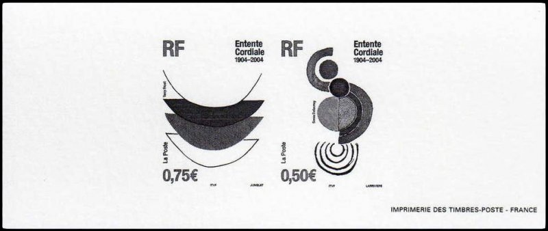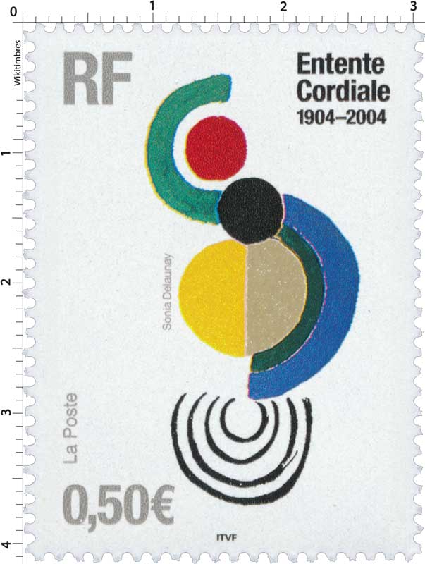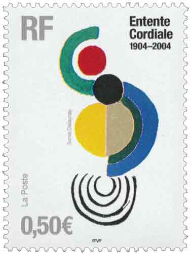 | Commentaire | La convention franco-anglaise concrétisant l’entente cordiale fut signée le 08 avril 1904. Après une période de contentieux durant le dernier quart du XIXe siècle, l’entente cordiale a marqué le rapprochement franco-britannique. La Royal mail et La Poste ont choisi de commémorer ce rapprochement à travers 2 œuvres contemporaines : « Lace I (trial Proof) » de Terry Frost et « Coccinelle » de Sonia Delaunay. Émission commune avec la Grande-Bretagne |