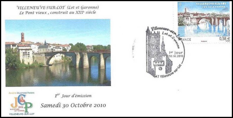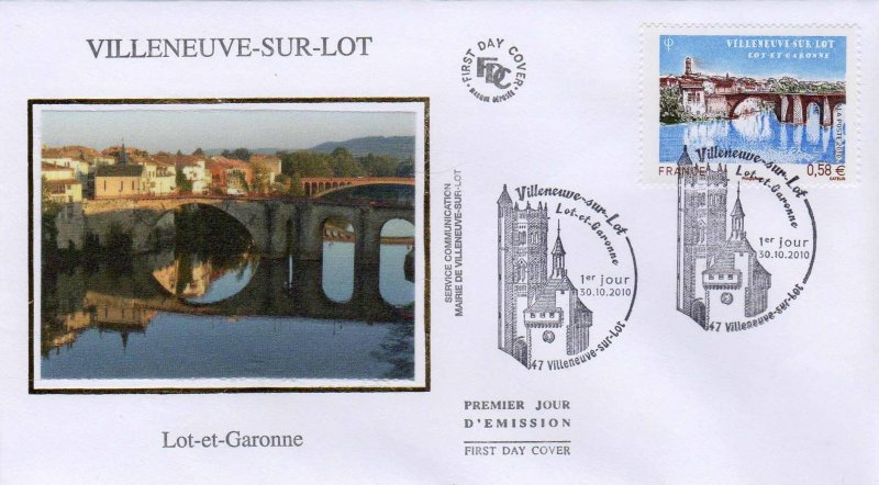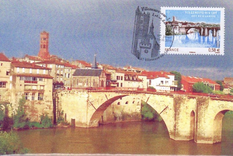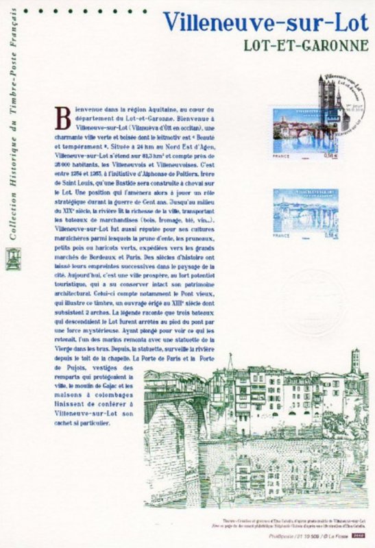 Villeneuve-sur-Lot est une commune du Lot-et-Garonne située au nord d’Agen. C’est entre 1254 et 1263, à l'initiative d'Alphonse de Poitiers, qu’une bastide fut créée à cheval sur le Lot, ce qui amena la ville à jouer un rôle stratégique durant la guerre de Cent ans. Jusqu'au milieu du XIXe siècle, la rivière fit la richesse de la ville, grâce au transport fluvial des marchandises. La ville fut ensuite réputée pour ses cultures maraî chères.