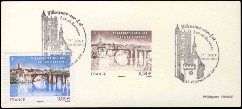 Aujourd’hui elle est une citée pros père qui a conservé son originalité et son patrimoine architectural : la Porte de Paris et la Porte de Pujols, vestiges de ses remparts, le Pont vieux érigé au XIIIe siècle dont sub sistent deux arches et qui illustre le timbre, mais aussi le moulin de Gajac et les maisons à colombages lui confèrent tout son cachet.