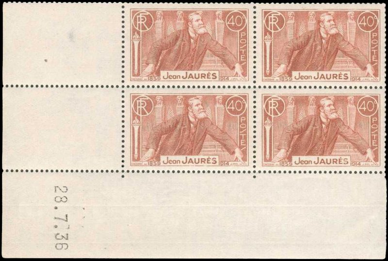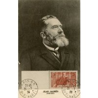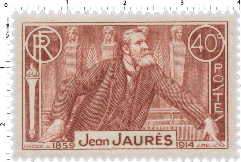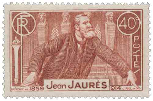 | Commentaire | Visuel : Assemblée Nationale, chambre des députés, Jean-Jaurès à la tribune de la salle des séances, à l'arrière plan, la structure du perchoir du Président, en acajou, décorée de quatre têtes féminines en bronze strictement identiques, reproduites d'un projet de Temple à l'Egalité conçu par Durand et Thibault, symboles d’égalité républicaine. Jaurès à la tribune de l’Assemblée, détail d’un tableau de René Rousseau-Decelle (1881-1964), peint en 1907. A la suite de la catastrophe du bassin minier de Courrières (Nord), Jaurès répond le 19 juin 1906 à Clémenceau, le briseur de grèves. En savoir plus sur Wikipédia : Jean Jaurès Voir la vidéo "Histoires de timbres" Émis pour le 22ᵉ anniversaire de l’assassinat de Jean Jaurès, ce timbre de 1936 occupe une place particulière dans l’iconographie républicaine : il marque à la fois l’hommage national rendu à l’orateur pacifiste et le rôle de la philatélie comme vecteur de mémoire politique. Dessiné par René Grégoire et gravé par Jules Piel, il traduit dans un style sobre et rigoureux la stature morale du tribun, assassiné le 31 juillet 1914 pour ses positions contre l’entrée en guerre. La vignette reproduit un portrait de Jaurès de profil, conforme à la tradition des grands hommes, mais traité avec une forte intensité graphique : la taille-douce accentue la profondeur des ombres et donne au regard une gravité qui évoque son engagement pacifiste. Le choix du brun-rouge renforce cette dimension mémorielle, couleur fréquemment utilisée pour les hommages officiels dans les années 1930. Ce timbre s’inscrit pleinement dans les émissions régionales de 1936 honorant des personnalités enracinées dans leur territoire : Jaurès, né à Castres (Tarn), apparaît ici dans la continuité des célébrations républicaines et des commémorations locales. Il accompagne également d’autres timbres consacrés à la mémoire nationale (Victor Schoelcher, Jean Moulin), dans une série que l’administration postale utilise pour diffuser une vision civique et culturelle de la France. Sa diffusion est importante : 15 millions d’exemplaires, imprimés en taille-douce rotative, ce qui en fait un timbre d’usage courant mais chargé d’un symbolisme historique fort. Très utilisé sur le courrier intérieur, il affranchissait notamment la carte postale simple, certaines factures sous bande et des paliers d’affranchissement pour les lettres ou valeurs déclarées.