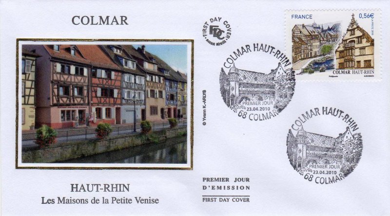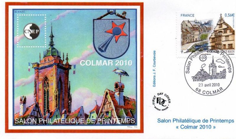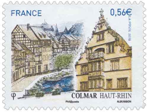 En 2010, Colmar accueille le salon philatélique de Printemps. La Maison des têtes et une vue de La Petite