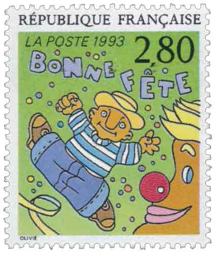 | Description | Le plaisir d'écrire vu par 12 auteurs de bandes dessinées. Bonne fête de Bernard Olivié, dessinateur et peintre, né à Paris en 1961 |