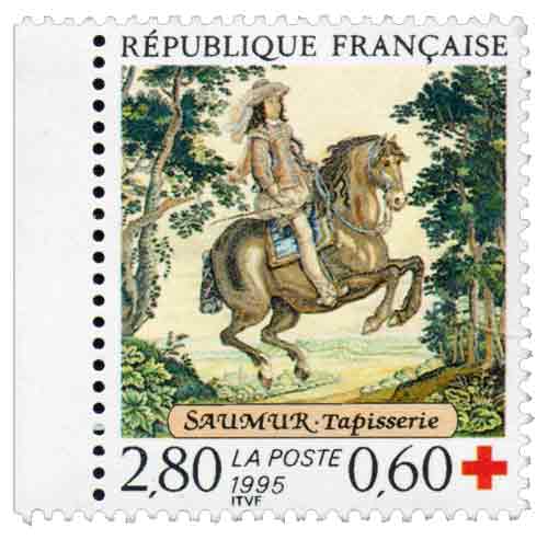 | Description | Au profit de la Croix-Rouge française. Tapisserie de Saumur, représentation de Louis XIII à cheval dans un décor rural (issu du carnet) |