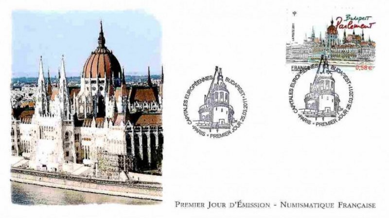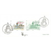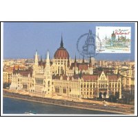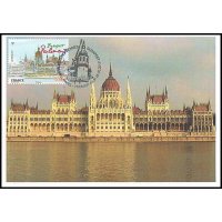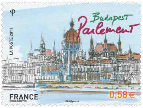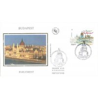 | Commentaire | Capitale européenne classée au Patrimoine Mondial par L'UNESCO, Budapest (formée par La fusion de Buda et de Pest) est illustrée ici par des timbres représentant son Parlement, son Palais Royal, Le Pont des Chaînes et Les bains Széchenyi. Budapest est en effet connue pour Les sources d'eau chaude qui remplissent ses célèbres bains. |