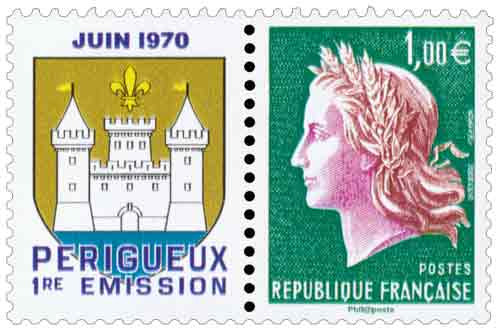 | Description | Marianne de Cheffer. 40e anniversaire du premier timbre émis à Boulazac (Dordogne) |
