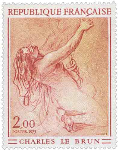 | Commentaire | Le timbre-poste français émis en 1973 dans la série dite du « Musée imaginaire » reproduit une Étude de femme à genoux de Charles Le Brun, dessin conservé au cabinet des dessins du musée du Louvre et caractéristique de la pratique préparatoire de l’artiste au milieu du XVIIᵉ siècle, période antérieure à son accession aux plus hautes charges artistiques du règne de Louis XIV. Cette émission, d’une valeur faciale de 2,00 francs, s’inscrit dans la politique philatélique française visant à diffuser auprès du grand public des œuvres graphiques rarement visibles, en l’occurrence une sanguine rehaussée de blanc sur papier beige, extraite d’un ensemble de cartons et d’études saisis après la mort du peintre. Le choix de ce sujet met en avant le rôle central du dessin dans le travail de Le Brun, non comme simple esquisse, mais comme outil fondamental de conception, permettant de fixer le geste, l’attitude et l’expression avant toute réalisation peinte ou décorative. Le timbre, imprimé en taille-douce, technique privilégiée pour les émissions artistiques françaises de cette période en raison de la finesse du trait qu’elle autorise, restitue la tension dramatique et la vigueur linéaire du modèle original, tout en valorisant la gravure interprétative de Pierre Béquet. Destiné à l’affranchissement du courrier courant à un tarif intermédiaire, ce timbre conjugue usage postal effectif et fonction culturelle, en rappelant la place majeure de Charles Le Brun dans l’histoire de l’art français, notamment comme organisateur du décor royal et arbitre du goût officiel sous Louis XIV. L’anecdote la plus souvent relevée par les historiens de l’art est que nombre de ces dessins, longtemps conservés hors de la vue du public, ont contribué à réévaluer Le Brun non seulement comme décorateur monumental, mais aussi comme dessinateur d’une grande liberté expressive, parfois jugé plus convaincant dans l’étude que dans l’œuvre achevée. Article rédigé pour WikiTimbres |