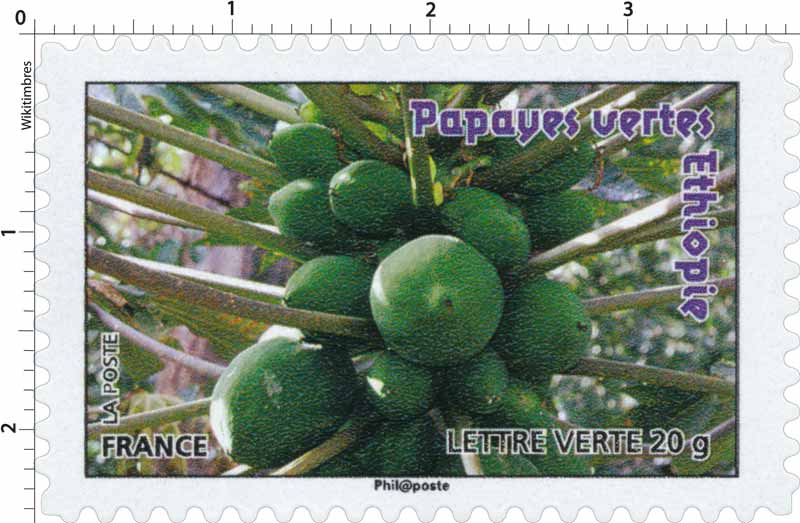 Description Carnet des fruits pour une lettre verte, papayes vertes, Éthiopie
