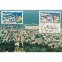 | Description | Israël-France 1er vol état d'Israël-France. Pour le soixantième anniversaire du premier vol aérien entre l'État d'Israël et la France, qui a relié Haïfa et Paris en juin 1948. Vue du port d'Haïfa avec le mausolée du Báb et la Sail Tower |