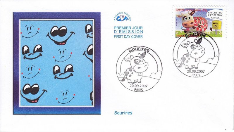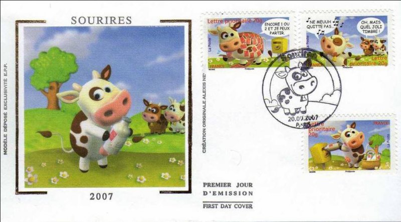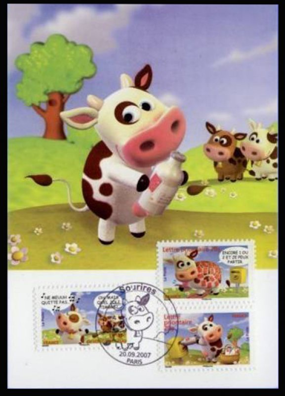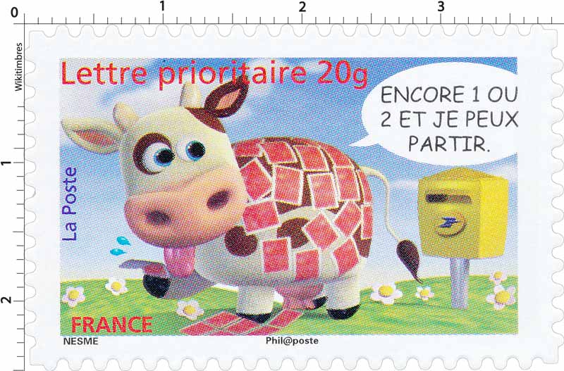 | Description | Carnet Sourires : Vache Montbéliarde affranchie avec des timbres |
