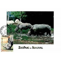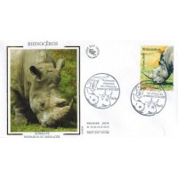 | Commentaire | La mise en vente anticipée a lieu les 20 et 21 juin au jardin d'acclimatation de Paris et à Villotte-devant-Louppy. Drochon réalise les deux cachets premier jour. Celui de Paris reprend la tête des trois gros animaux et le condor en vol, tandis que celui de Villotte reproduit la tête de l'aurochs de la série. Le rhinocéros est un mammifère herbivore. Il peut mesurer jusqu’à 5 m de long pour 1,80 m de hauteur, son poids pouvant atteindre les 2 tonnes. Vivant en Asie et en Afrique, le rhinocéros est toujours entouré de petits oiseaux : les pique-bœufs. Ceux-ci se nourrissent des tiques qui s’enfoncent dans leur peau. Chassé autrefois par les colons pour le plaisir, il est victime de nos jours du braconnage à cause de ses cornes qui valent très cher. Dans certaines cultures, on utilise la corne du rhinocéros pour en faire des sculptures. On lui attribue également des effets thérapeutiques ou médicinaux. À cause de ces croyances, le rhinocéros est une espèce d’animal des plus menacées.. |