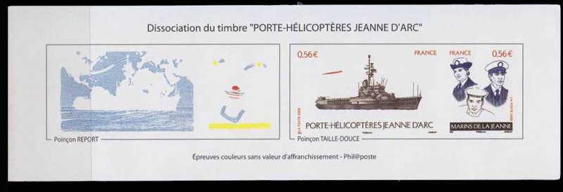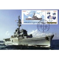 | Commentaire | Le porte-hélicoptères Jeanne d’Arc prend sa retraite en 2010 après 46 années de bons et loyaux services. Ce navire-école, mis en service le 16 juillet 1964, aura formé des milliers d’officiers de marine durant sa campagne d’application annuelles. Long de 181 mètres et déplaçant 10 575 tonnes, la « Jeanne » file 27 nœuds (50 km/h). De son pont d’envol, à l’arrière, trois hélicoptères peuvent décoller simultanément. En temps de paix, ce bâtiment militaire a pour vocation de fournir une formation pratique aux jeunes officiers de marine. L’enseignement, dispensé durant les cinq mois de la campagne, se fonde sur l’observation et la participation des élèves à toutes les activités. Les occasions de rencontre, en mer et en escale, leur ouvrent un horizon international, atout qui leur sera profitable dans leur carrière. 51 officiers, 425 membres d’équipage forment l’effectif total du navire. Tous sont actifs et opérationnels durant la campagne car ils sont appelés à intervenir, notamment en situations d’urgence. En effet, la « Jeanne » participe à des missions humanitaires. Ainsi en 2009, le bâtiment participe à l’opération européenne de lutte contre la piraterie en Somalie. Le temps des escales est celui des réceptions de personnalités du pays. Ambassadeur de l’image de la France à l’étranger, le nom du porte-hélicoptères « Jeanne d’Arc » retentira encore longtemps dans tous les ports. |