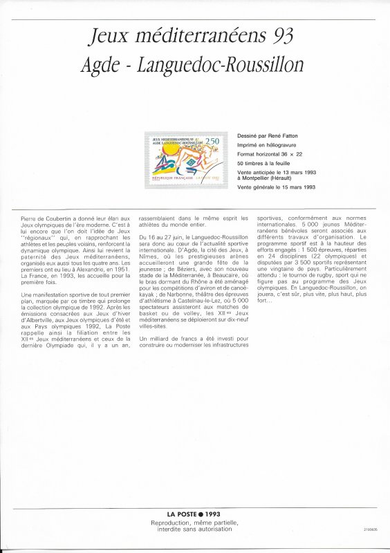 | Description | Jeux méditerranéens 93. Agde Languedoc-Roussillon |
