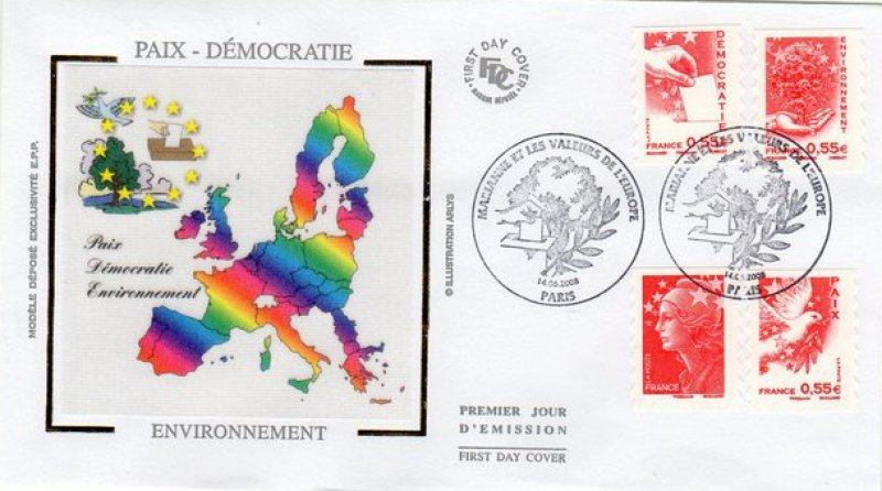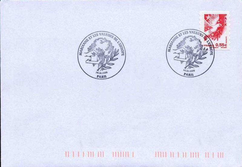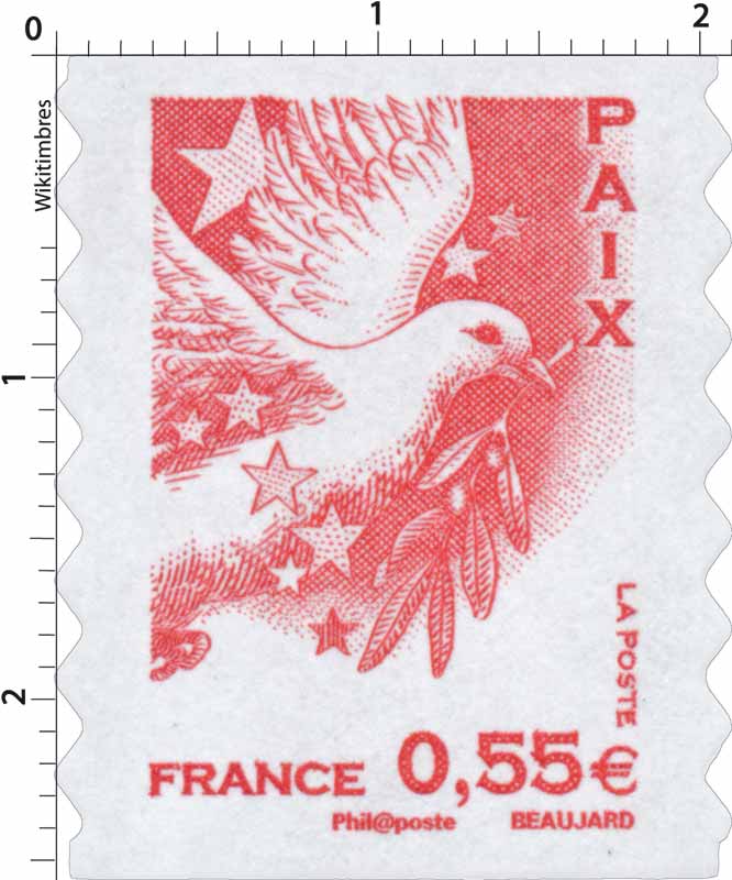 | Description | Carnet Marianne et les valeurs de l'Europe : Paix (colombe avec rameau d'olivier) |