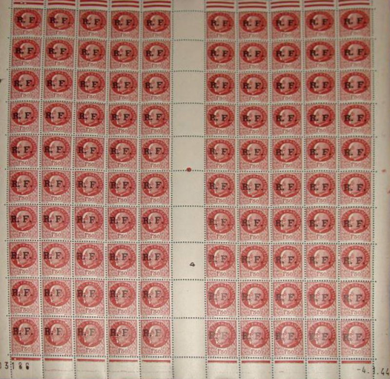 | Description | Maréchal Pétain, type Bersier, surcharge R.F. |