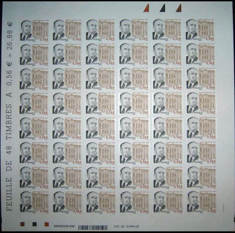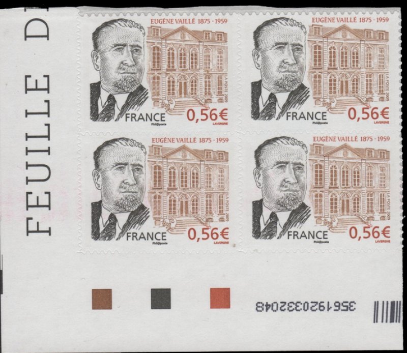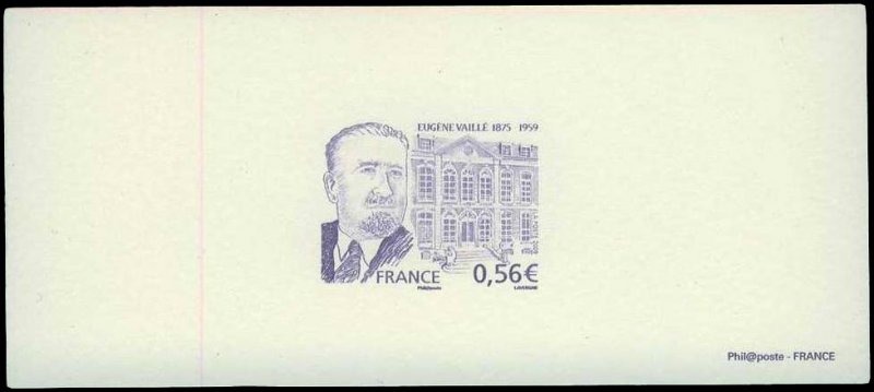 | Commentaire | Existe également sur papier gommé. La mise en vente anticipée a lieu le 19 septembre au musée de La Poste à Paris, et les 19 et 20 septembre dans sa ville natale de Bédarieux. Les mêmes jours, le cachet sans mention « premier jour » Visuel : commémoration du cinquantenaire de la mort d'Eugène Vaillé (1875-1959), fonctionnaire des Postes et premier conservateur du Musée postal de France, né à Bédarieux (34-Hérault) - L'hôtel de Choiseul-Praslin, construit en 1722 pour la comtesse de Choiseul par l'architecte Sulpice GAUBIER (111-117, rue de Sèvres, Paris 6ème) abrita le musée postal lors de sa création en 1946, jusqu'en 1973, année à laquelle il fut transféré sous le nom de Musée de la Poste, avenue de Vaugirard (Paris 14ème) et inauguré le 18 décembre 1973. |