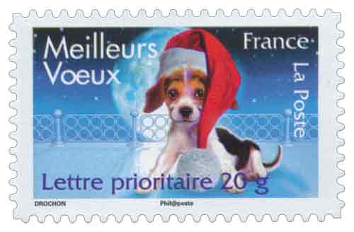 | Description | Meilleurs Vœux : chiot avec bonnet rouge |