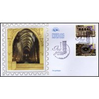 | Commentaire | Les cathédrales sont Les chefs d'œuvres de L'art gothique. Les 12 timbres de ce carnet portent sur des éléments architecturaux caractéristiques de L'esthétique gothique: La recherche de hauteur et de verticalité permises par La croisée d'ogives, Les jeux de couleurs de La Lumière pénétrant par Les vitraux, La multiplication des colonnettes, des sculptures, et Les façades de plus en plus décorées |