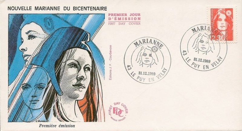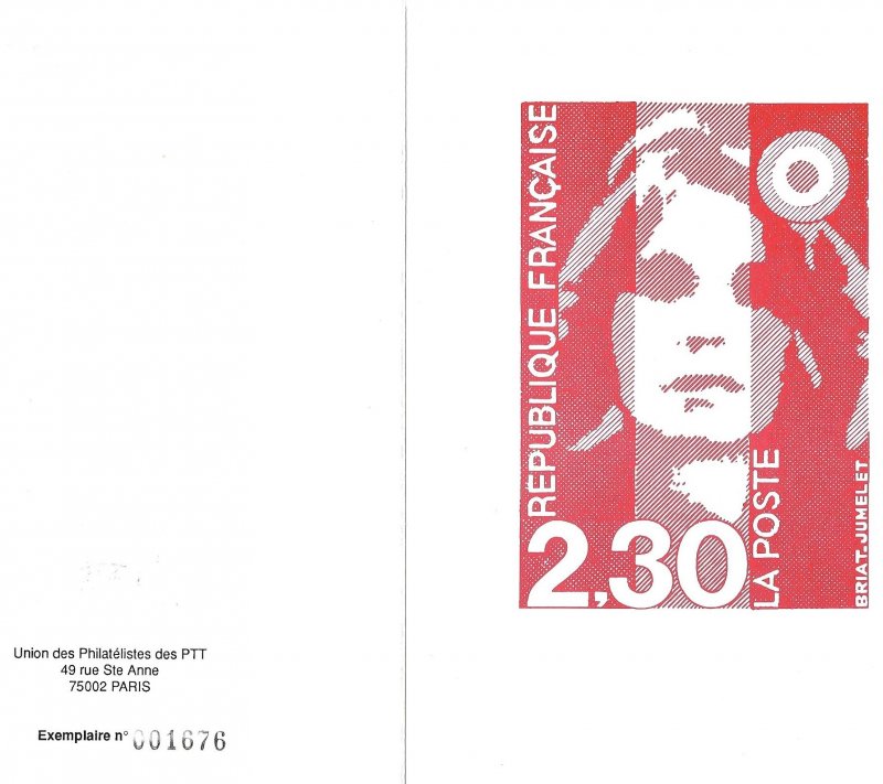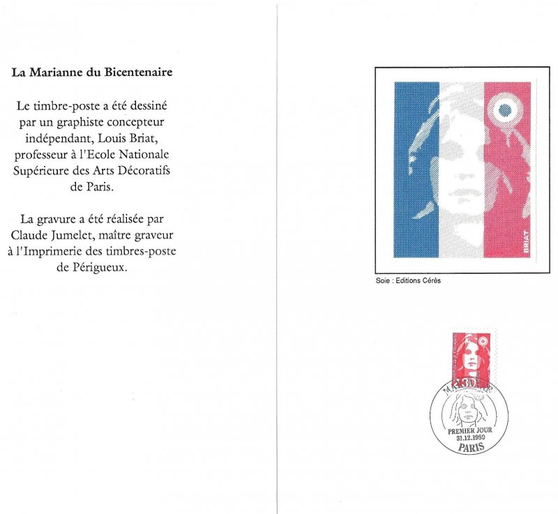 | Commentaire | Existe avec gomme mate ou dite tropicale. Existe non surchargé accidentellement de bandes phosphorescentes. Existe également surchargé d'une seule bande phosphorescente. En savoir plus sur Wikipédia : Marianne du Bicentenaire |