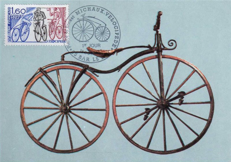 | Description | Vélocipède, Pierre et Ernest Michaux, (1813-1883 et 1842-1882), inventeurs du vélocipède à pédales, nés à Bar-le-Duc (Meuse) |