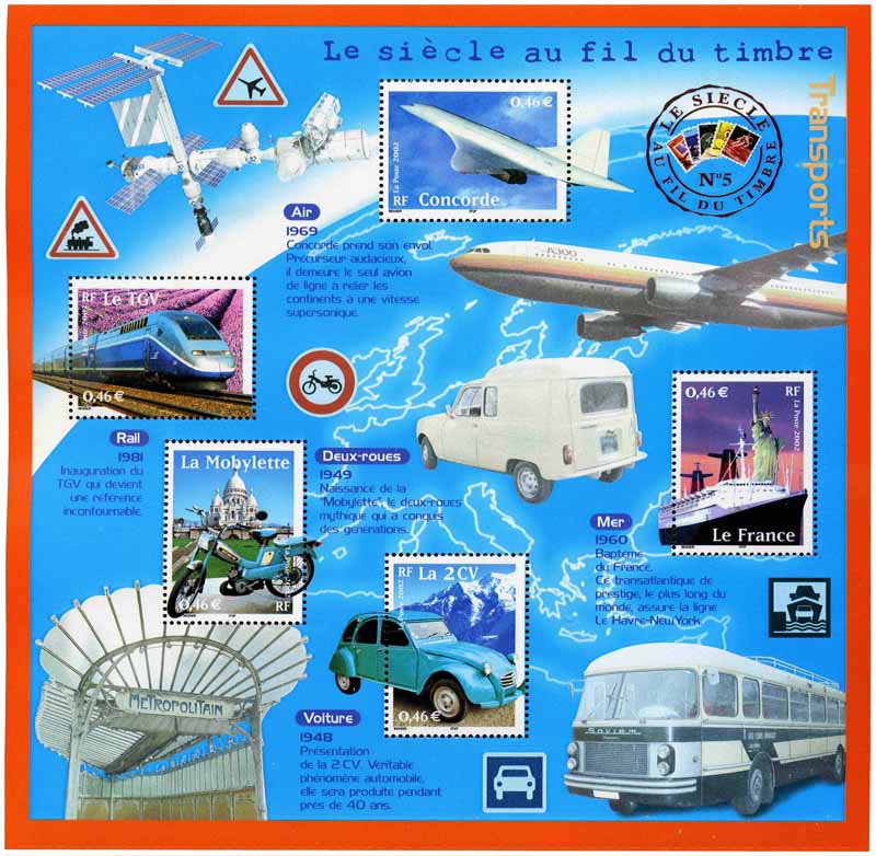 | Description | Le siècle au fil du timbre (V). Le bloc transports |