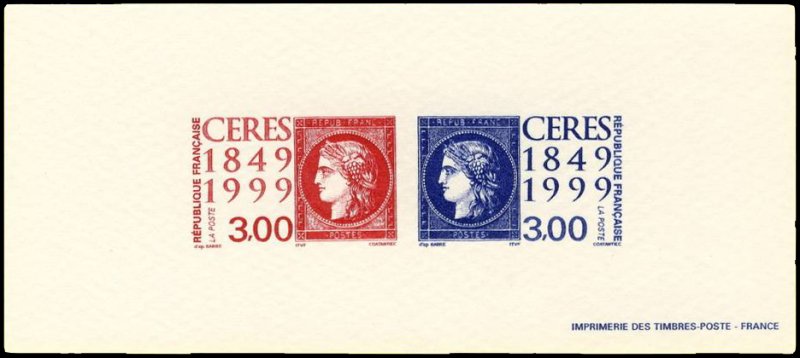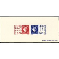 | Description | Cérès 1849-1999. 150e anniversaire du premier timbre-poste français. Émis en carnet. Timbres sur timbres |